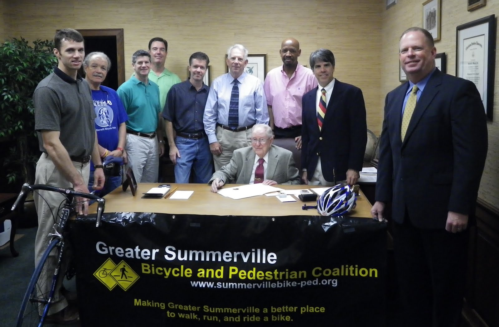 Town of Summerville Bike/Ped Coalition joins the Mayor in signing of their Bike Month proclamation. |