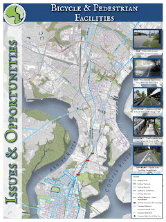 On Monday night, Rachael and I attended the kick-off session for the Partnership for Prosperity design charrette in North Charleston. To recap, the BCD COG is holding a design charrette all this week to brainstorm and create plans for making the Charleston Neck a more viable community with better connectivity. I was extremely pleased to see all the progress made since the focus group session two weeks prior to Monday night’s meeting. All the suggestions put forth for bike/ped provisions had been taken into consideration and were clearly displayed on the updated map.