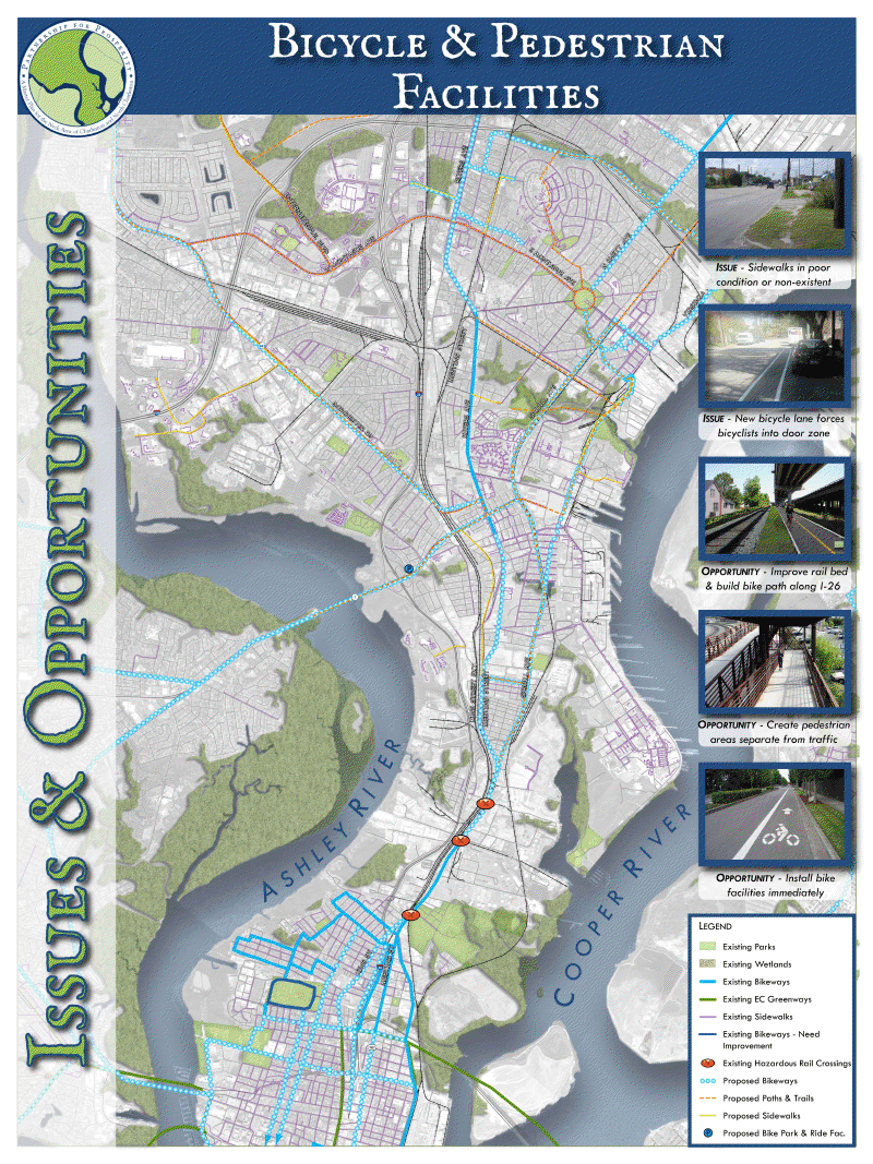 On Monday night, Rachael and I attended the kick-off session for the Partnership for Prosperity design charrette in North Charleston. To recap, the BCD COG is holding a design charrette all this week to brainstorm and create plans for making the Charleston Neck a more viable community with better connectivity. I was extremely pleased to see all the progress made since the focus group session two weeks prior to Monday night’s meeting. All the suggestions put forth for bike/ped provisions had been taken into consideration and were clearly displayed on the updated map.